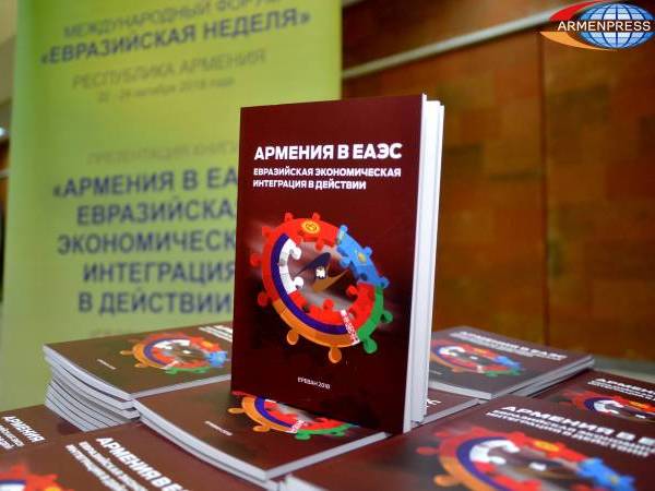 Два часа тому назад на площадке Евразийской недели мы презентовали книгу »Армения в ЕАЭС: евразийская экономическая интеграция в действии». Это сборник статей, приуроченный к Евразийской неделе, ведущих ученых и экспертов нашего клуба, посвященный экономическим, социологическим, цивилизационным и культурно-гуманитарным аспектам евразийского интеграционного процесса. Мы надеемся, что эта книга ответит на многие вопросы относительно участия Армении в ЕАЭС и станет поводом для новой активности научного и экспертного сообщества Армении в этой сфере. Мы раздадим всем вам, уважаемые присутствующие, экземпляры этой книги и будем очень благодарны, если вы ознакомитесь с нашими исследованиями и наработками.